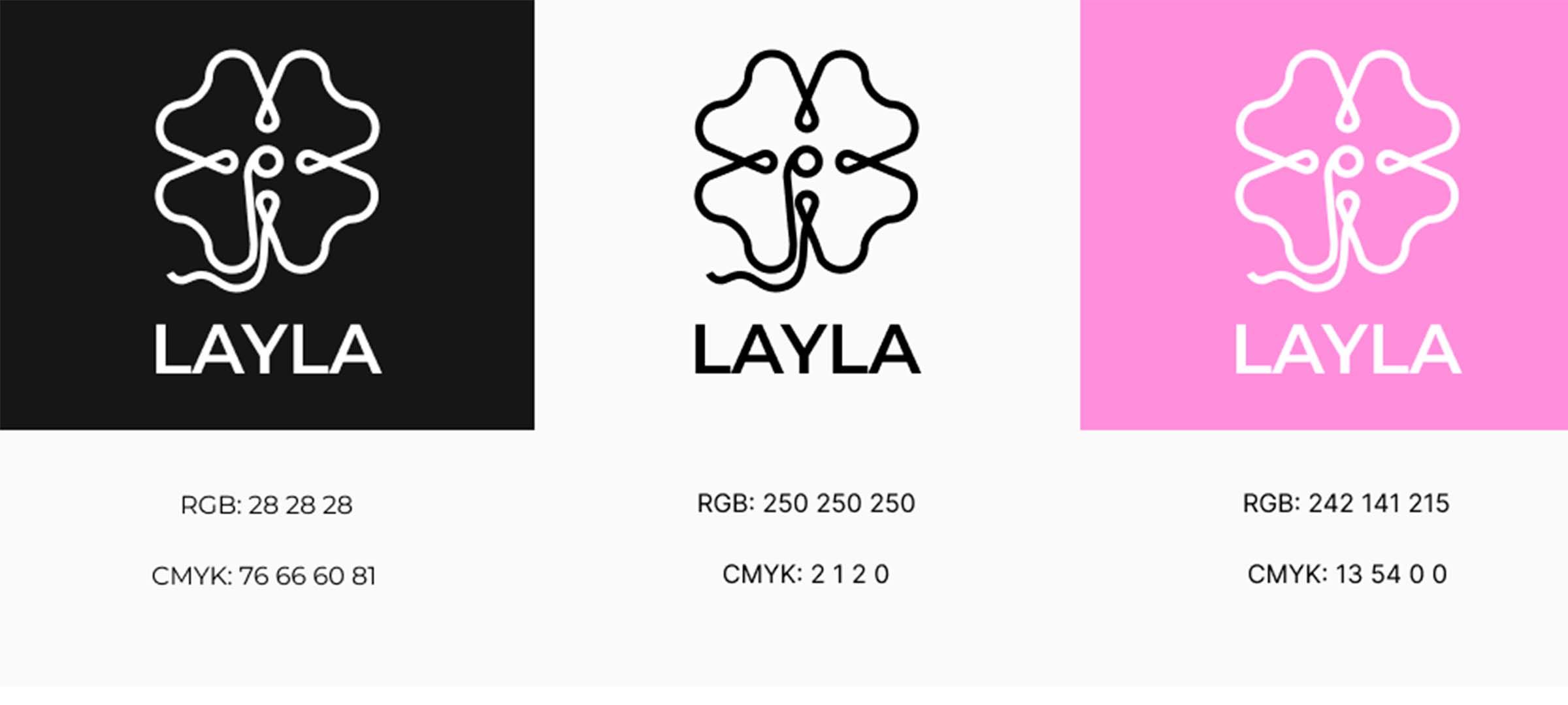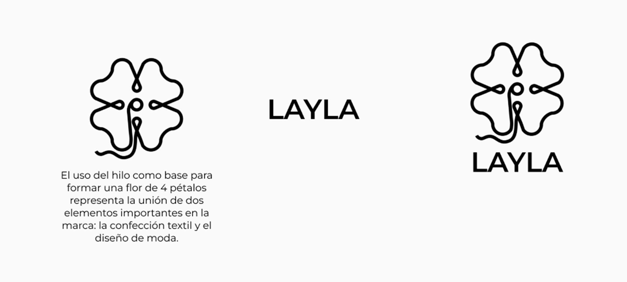 El logotipo de LAYLA es una flor de cuatro pétalos formada por un hilo. El hilo representa la conexión entre la naturaleza y la humanidad, y los cuatro pétalos representan los cuatro elementos: tierra, agua, fuego y aire.